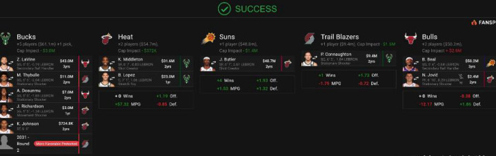 最近NBA圈内热闹非凡,美国媒体Fanspo曝光了一则引人瞩目的四方交易构想。根据这个设想,热火将巴特勒送往太阳,而公牛接手比尔的合同,雄鹿则获取拉文和多位辅助球员,同时开拓者和热火也参与其中,完成互换。